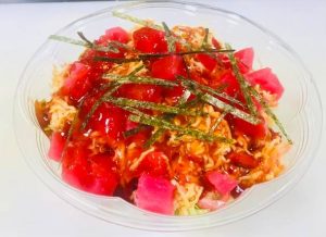 Crab, Cucumber, Avocado, Topped with Tuna or Salmon Spicy Mayonnaise, Eel Sauce, Hot Sauce, Jalapeno